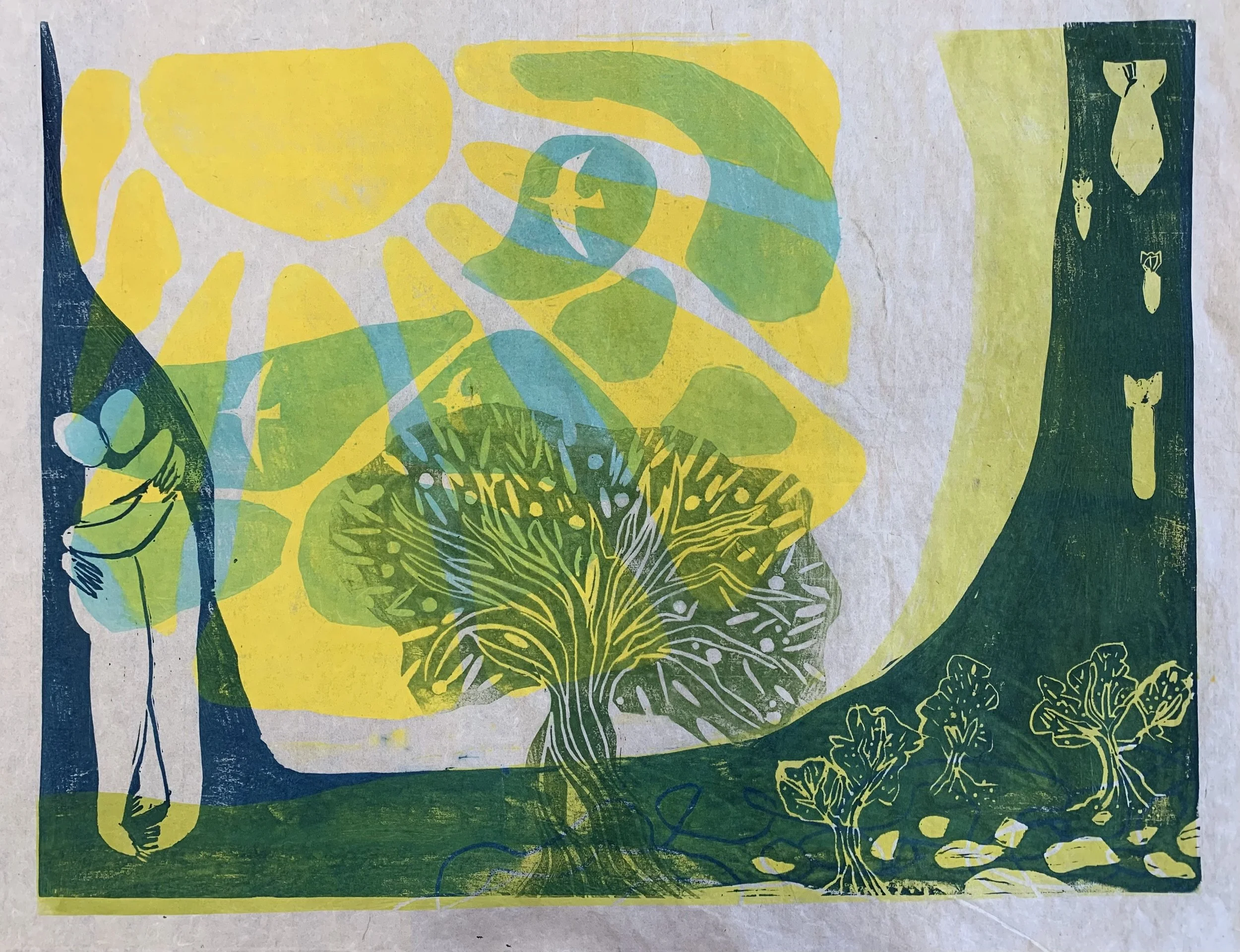 “A Peaceful Place” version 1, Mokuhanga Woodblock Print, 25cm X 25 cm, 2021