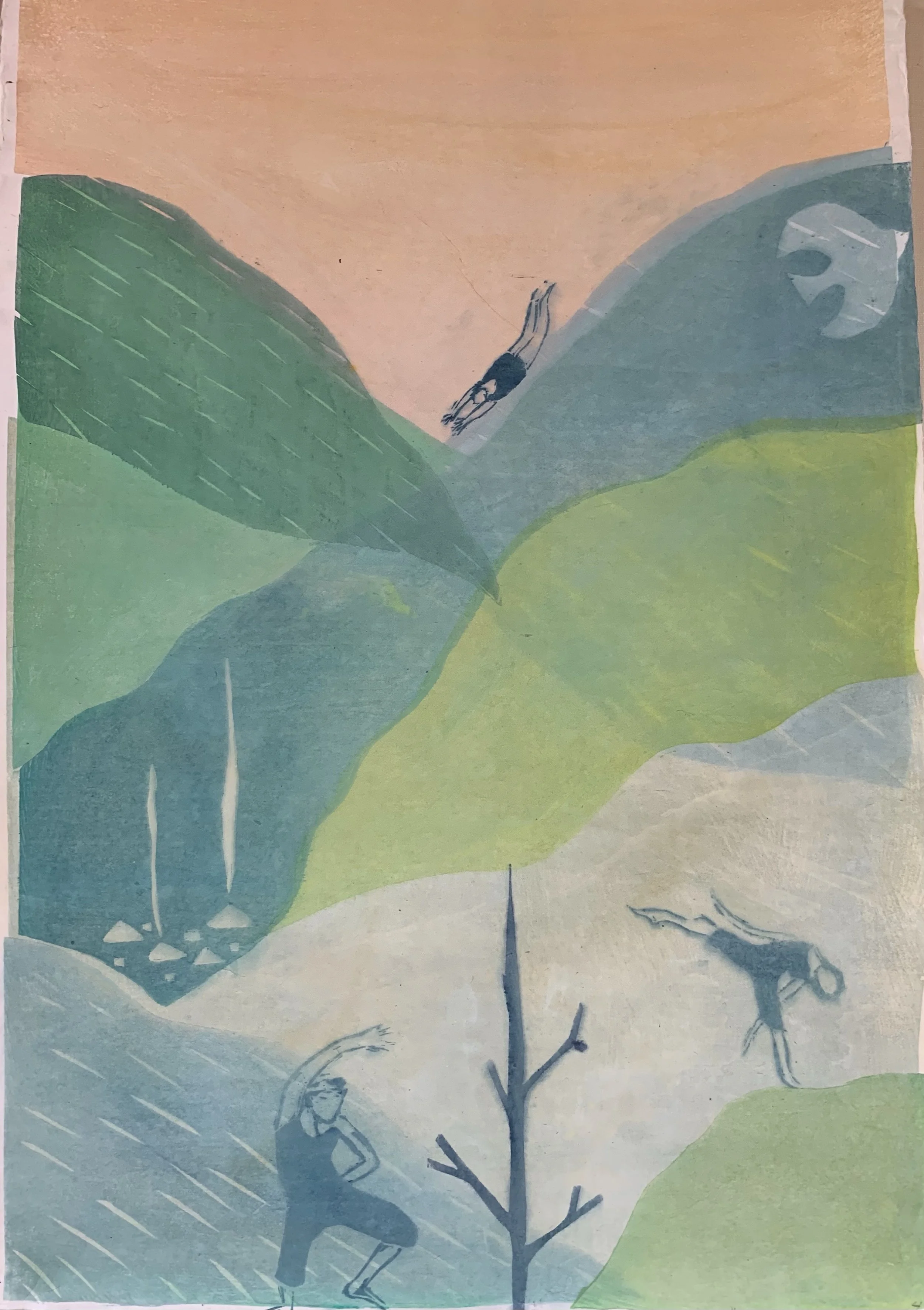 “Dancing through”, Mokuhanga woodblock print, Washi paper, 60cm x 45cm, 2022