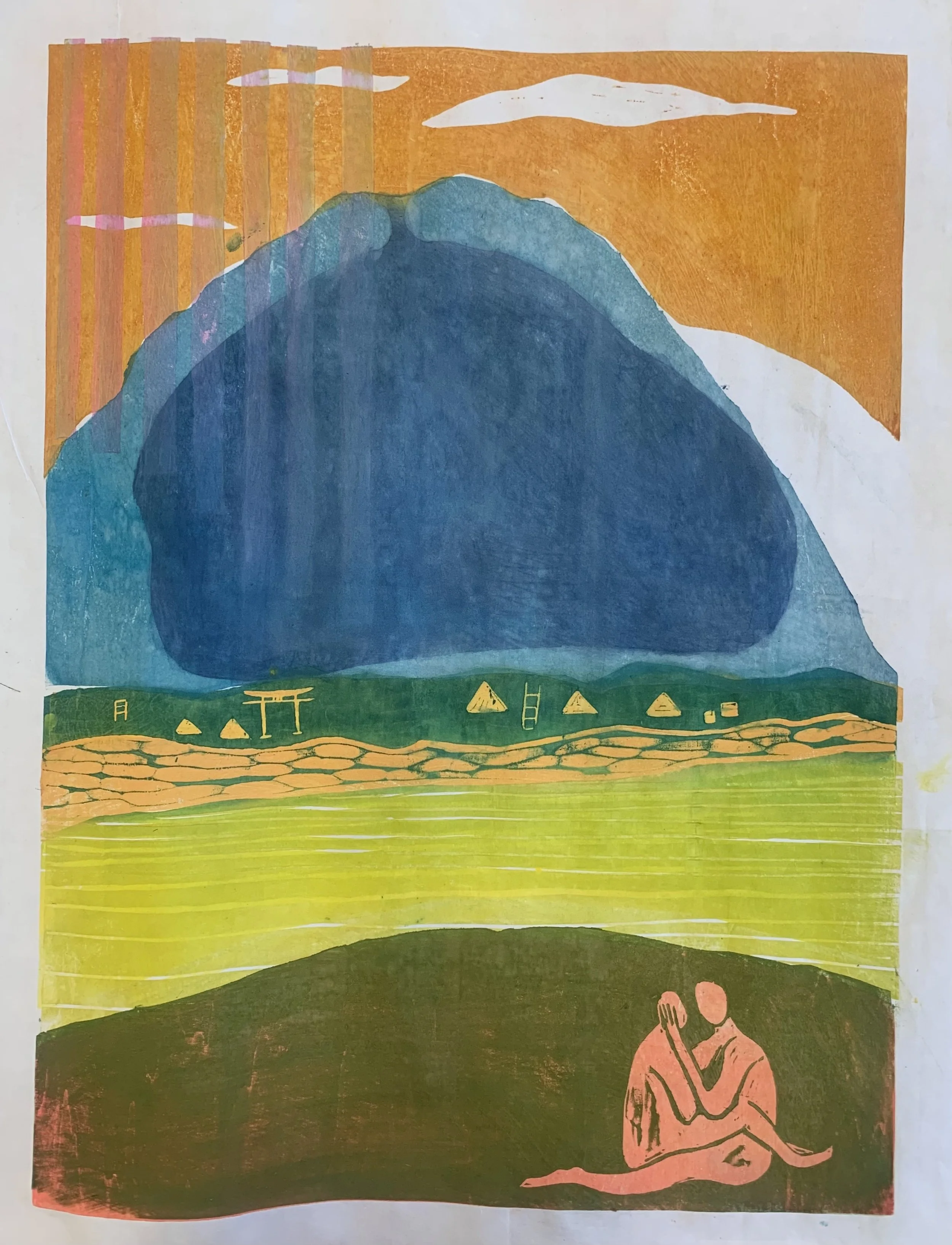 “Floating in the Inaka”, Mokuhanga woodblock print, Washi paper, 28cm x 17cm, 2022