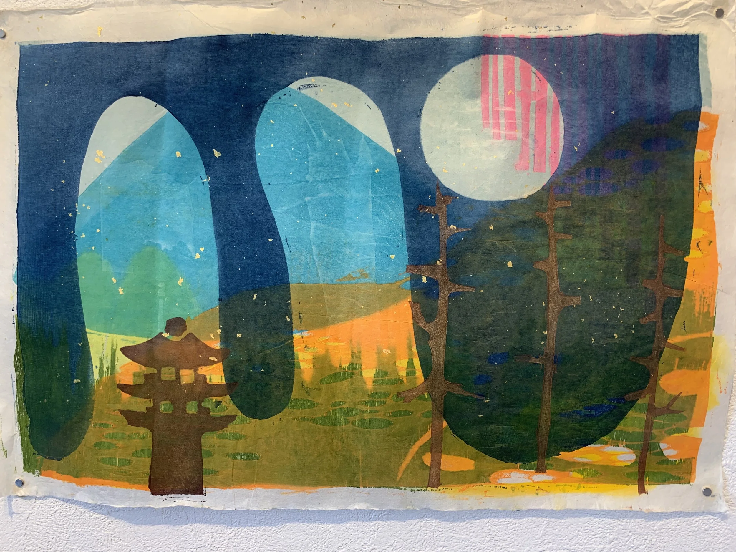 “Under The Mountain Noon”, Mokuhanga woodblock print, Washi paper , 60cm x 45cm, 2022